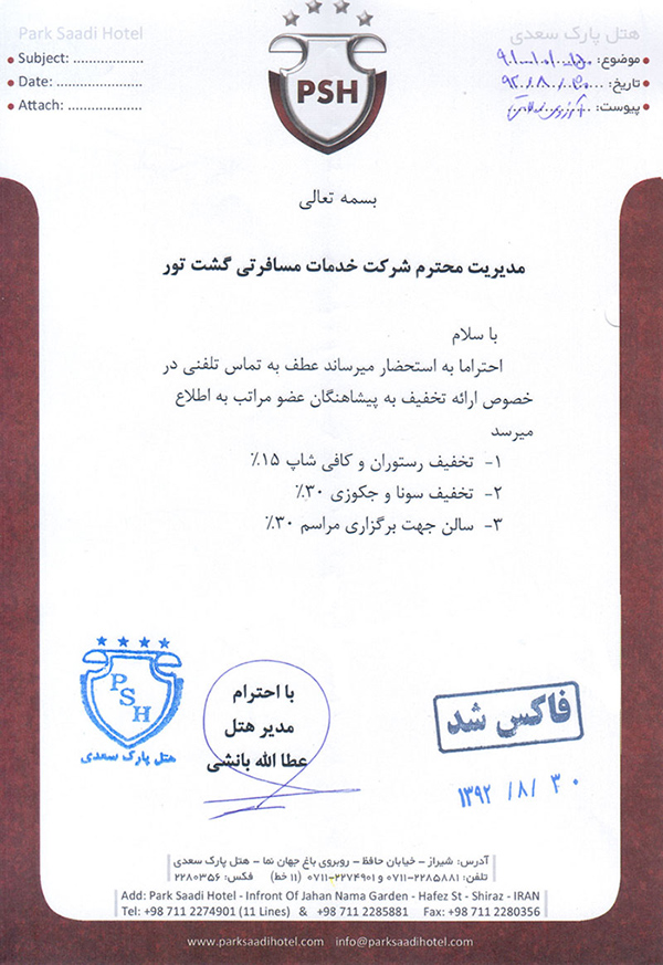 اخبار تخفیف ویژه هتل پارک سعدی به پیشاهنگان عزیز جهت استفاده از خدمات هتل 21/11/201320/11/2018 admin تخفیف ویژه هتل پارک سعدی به پیشاهنگان عزیز جهت استفاده از خدمات هتل