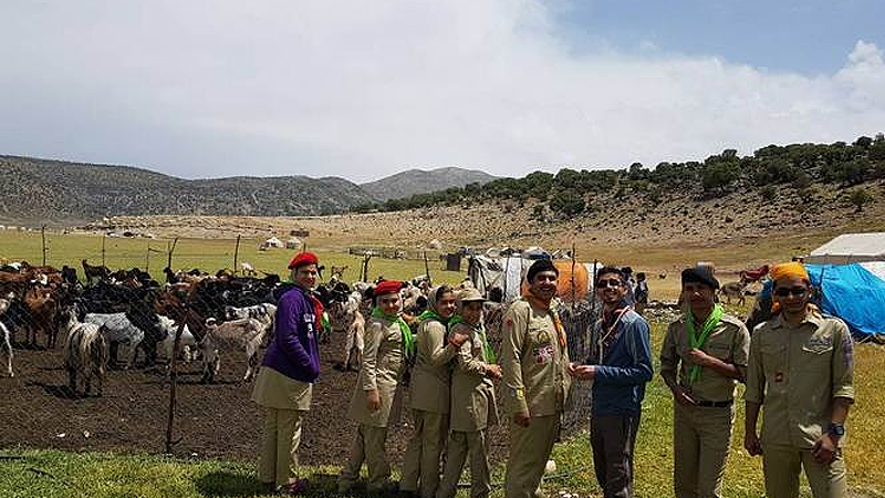 پیشاهنگ ها و فرشته ها به ترتیب سوار ماشین می شدند و همچنین پیاده می رفتند. پس از آن همه با هم به سمت آبشار زیبایی که در آنجا بود رفتیم. در آن هوای سرد و بارانی که همه خیس شده بودند زیراندازها را انداختیم و بالای سرمان نیز چندتا از زیراندازها را بستیم تا باران به ما نخورد. بعد از آن وسطی بازی کردیم که بسیار حال داد. در همین حین، آقای قاجار و آقای اسفندیاری مشغول درست کردن کباب شدند. وقتی که آماده شد ناهار را خوردیم، اندکی بعد وسایل را جمع کردیم و همگی سوار ماشین شدیم و بسوی چادرهای عشایرها رفتیم. در آنجا تعداد زیادی مرغ و خروس و گوسفند بود. با همدیگر بازی های مختلفی از جمله قیصر و استوپ به هوا بازی کردیم. سپس آقای طاهری گره های لازم را برای ما توضیح دادند که بسیار جالب بود. الان نیز در حال نوشتن گزارش هستیم.