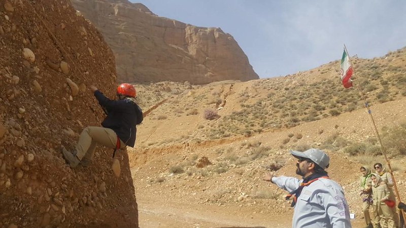 شرح اردو: صبح روز جمعه مورخ ۲۷ / ۱۱/ ۹۶ به طرف خانه جهانگردی حرکت کردیم . پس از چند دقیقه ایستادن به طرف ماشین آقای قاجار رفتیم و سوار ماشین شدیم و فریاد شادی خواندیم تا به مقصد یعنی کوه سرخ رسیدیم. استراحت کردیم و زیراندارهایمان را پهن کردیم. برای مراسم پرچم بچه های جدید را آماده کردیم و در مراسم پرچم شرکت کردیم. البته قبل از مراسم کمی ورزش کرده بودیم که بدنهای ما گرم شود. خلاصه پس از کمی صحبت کردن برای خوردن صبحانه (آش) آماده شدیم و واقعا خوشمزه بود. وقتی آشهایمان را خوردیم به همراه پیشاهنگان و خانم قاجار تمام عیب و ایرادهای مراسم پرچم را برطرف کردیم تا دیگر مشکلی پیش نیاید. در همان حال آقای کاره و آقای قاجار دماغه ای را انتخاب کرده و آن را برای تمرین سنگ نوردی آماده می کردند. وقتی دماغه آماده شد با مارش تک تک ما را به بالا فرستاده و باز به پایین باز میگشتیم. من واقعا ترسیده بودم و به نظر خودم ترسم به جا بود. هرچند آقای کاوه ما را با طناب از آن پایین حمایت میکردند. واقعا دستشان درد نکند. بعد بشقابهایمان را برداشته و برای ناهار آماده شدیم. ناهار فلافل داشتیم که هر نفر دو عدد ساندویچ گیرش می آمد. بعد از ناهار لذیذمان آقای همایون برای ما در باره ی موقعیت ها و منطقه ی کوه سرخ سخن گفتند و ما یادداشت کردیم. وقتی منطقه شناسی تمام شد ما وسطو بازی کردیم که واقعا خوش گذشت. سپس من و دریا و دیبا و رژینا به دنبال سنگ بودیم برای کلکسیون سنگ. سنگ جمع آوری میکردیم. پس از مدتی رژینا و دیبا به ما گرهی کارانیک و گره دستمال گردن یاددادند. وقتی گره ها را یاد گرفتیم شروع به نوشتن گزارش کردیم. سپس اردوگاه را جمع کرده و به سمت خانه جهانگردی حرکت میکنیم. امروز یکی از بهترین اردوهای من بود و به من خیلی خوش گذشت و بابت این همه زحمت از همه سپاسگزارم. درسا کاوه