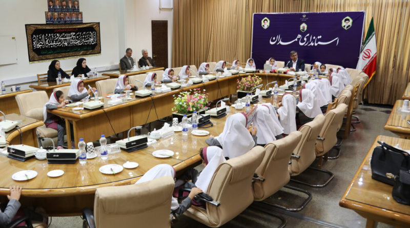 این کودکان، که مهمان استاندار همدان در هفته کودک و نوجوان بودند، به دعوت شاهرخی گرداگرد میز کنفرانس نشستند تا او با بیانی کودکانه وظایف خدمت رسانی را برایشان بازگو کند.