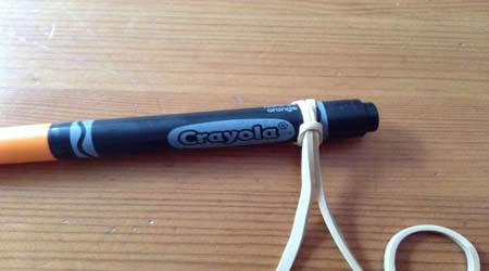 مرحله دوم: در این بخش کش پلاستیکی تهیه شده را در ابتدای ماژیک گره بزنید همانند تصویر زیر عمل کنید.