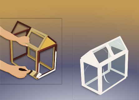 ۵ – در قسمت پایانی، بدنه گلخانه را رنگ کنید و دوباره شیشه ها را در قاب قرار دهید. بعد از این کار گیاهان خود را در گلخانه قرار دهید. برای رنگ بدنه از رنگ چوب استفاده کنید. شیشه ها را از داخل گلخانه به قاب ها متصل کنید و از چسب حرارتی برای چسباندن آن ها استفاده کنید. می توانید به جای شیشه از پلاستیک هم استفاده کنید.