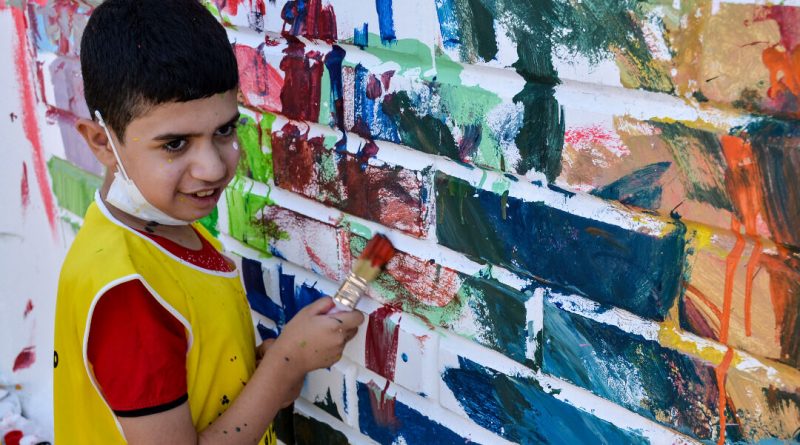 کودکان اوتیسم در آبادان دیواری را به نام خود نقاشی و ثبت کردند
