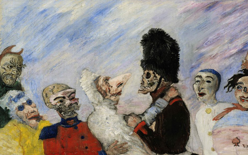 تابلو زیر اثری از جیمز انسور است که دعوای دو اسکلت را نمایش میدهد. او با ترسیم این اثر به شرایط خانوادهاش در آن زمان اشاره کرده است.