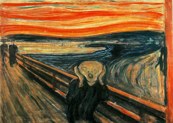 ادوراد مونک، نقاش نروژی نیز به خاطر پدر خشن و الکلی خود گرفتار بیماریهای روحی شده بود. او در سال ۱۸۶۳ متولد شد. مادرش را وقتی خیلی کوچک بود از دست داد و چیزی از او به خاطر نداشت. مونک در خانهای که فاقد تهویه مناسب بود زندگی میکرد که این موضوع سبب بیماری او و خواهرش شده بود.